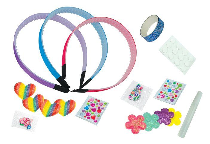Tvorba čelenek set. Obsahuje 3 čelenky, ozdoby a barevnou pásku, oboustrannou lepicí pásku, lepidlo. 2 varianty. 8ks v display boxu.
