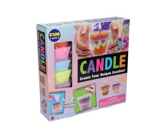 Tvorba svíček. Součástí 2 skleněné nádobky na svíčky 6,8x6,8x4,3 cm a 6x6x6 cm, 5 barevných vosků, knot, tyčinka, návod.