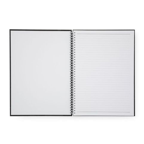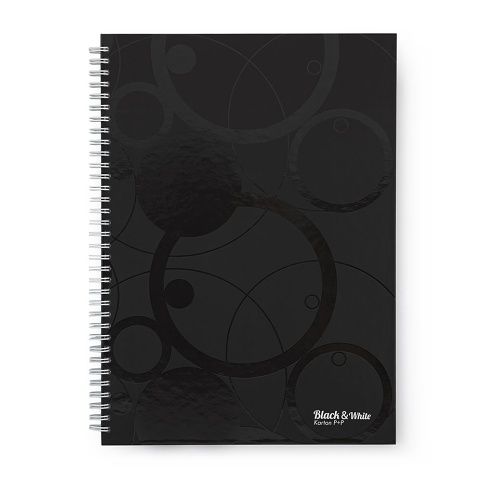 Kroužkový blok s dvojitou spirálou. Boční vazba umožňuje snadné otáčení a odtrhávání stránek. Uvnitř linkované listy s perforací. Pevné lamino desky.