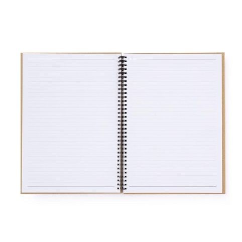Kroužkový blok s dvojitou spirálou. Boční vazba umožňuje snadné otáčení a odtrhávání stránek. Uvnitř linkované listy s perforací. Pevné lamino desky. Moderní barvy nature.