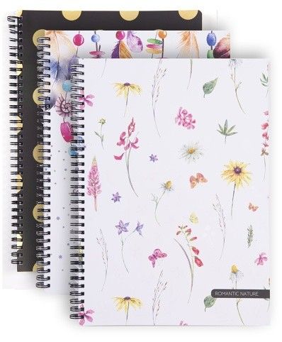 Kroužkový blok s dvojitou spirálou. Boční vazba umožňuje snadné otáčení a odtrhávání stránek. Uvnitř linkované listy s perforací.