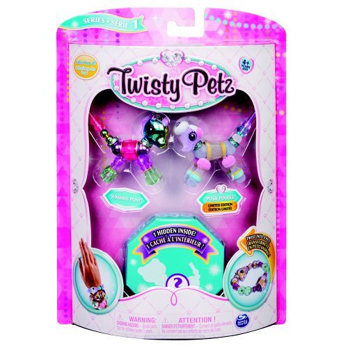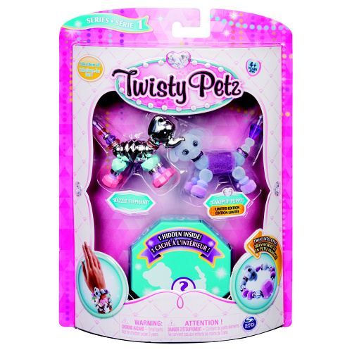 Troj balení TWISTY PETZ zvířátek z nichž jedno je překvapení! Náramky nebo náhrdelníky a zvířátka v jednom! Krásné TWISTY PETZ zvířátko chyť za ocásek a hlavičku a zatáhni. Proměna ze zvířátka na náramek se stane v jediné sekundě! Náramky se dají napojovat na sebe a prodloužit na náhrdelník. Poskládej pak zase několika jednoduchými tahy z náramku krásné trendy zvířátko. Je to tak jednoduché a tak trendy!