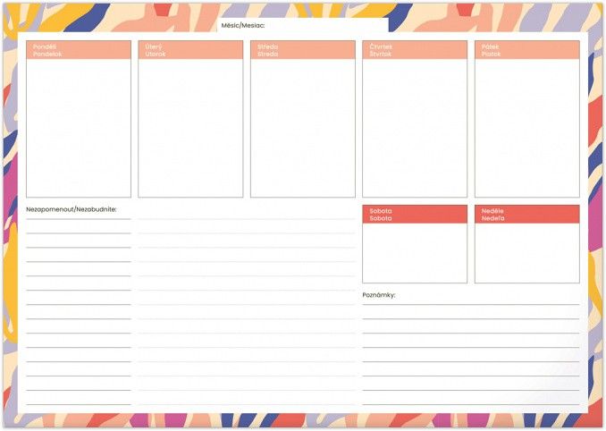 Týdenní nedatovaná plánovací podložka Listy, 42 × 29,7 cm