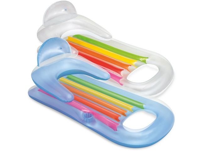 INTEX 58802 Nafukovací lehátko v duhových barvách. Prostorné a pohodlné lehátko vám zajistí skvělý odpočinek ve velkém bazénu nebo na dovolené u moře. Nafukovací hračky a potřeby Intex splňují nejpřísnější bezpečnostní normy na zpracování a použité materiály. Perfektní pro relaxování na vodní hladině díky pohodlné opěrce. Parametry:Velmi stabilní opěrkaDržák na pití součástíRozměr: 160 x 85 cmMateriál: vinyl 0,30 mmVčetně opravných záplat. Nosnost: 100 kg