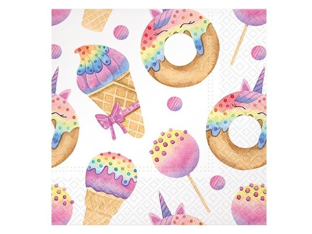 Celoroční ubrousek s barevnými sladkostmi Veselý ubrousek s motivem zmrzlin, donutů a lízátek v duhových barvách rozzáří každou oslavu. Hravy‚ design s nádechem jednorožců je ideální pro dětské narozeniny, párty nebo letní zahradní posezení. Díky třívrstvé struktuře jsou ubrousky odolné a hodí se nejen na prostřený stůl, ale i k dekoračním účelům. MOTIV: sladkosti POČET UBROUSKŮ V BALENÍ: 20 ks Uvedená cena je za 1 balení (20 kusů).