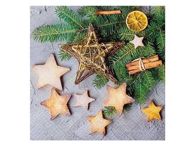 Vánoční ubrousek s motivem proutěné hvězdy a vánočního cukroví Dodejte svátečnímu stolování jedinečný šmrnc s elegantním vánočním ubrouskem zdobeným proutěnou hvězdou, vánočním cukrovím, skořicí a sušeným pomerančem. Jemný šedý podklad nechává krásně vyniknout přírodní dekorace a navozuje hřejivou atmosféru tradičních Vánoc. Díky třívrstvému provedení je ubrousek pevný, odolný a příjemný na dotek. Stane se elegantním doplňkem pro vánoční stolování, rodinné oslavy nebo sváteční výzdobu. POČET UBROUSKŮ V BALENÍ: 20 ks MOTIV: proutěná hvězda, vánoční cukroví Uvedená cena je za 1 balení po 20 ks.