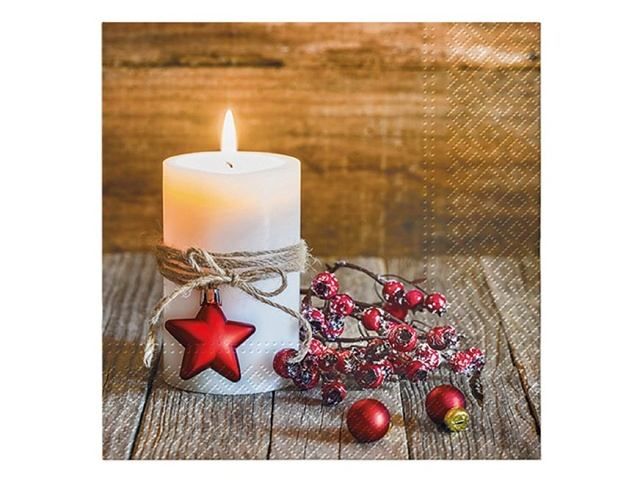 Vánoční ubrousek s rustikálním motivem svíčky Tento ubrousek vnese na váš stůl klidnou zimní atmosféru – decentní plamen svíčky, přírodní jutový provázek a červené akcenty vytvářejí harmonický celek, který zaujme na první pohled. Jemný rustikální motiv krásně ladí se sváteční tabulí a doplní i další vánoční dekorace v interiéru. Papírový ubrousek je třívrstvý, odolný a příjemný na dotek, takže spojuje praktičnost s krásným designem. Stane se drobným, ale výrazným detailem, který podtrhne kouzlo vašeho vánočního stolování. MOTIV: svíčka POČET UBROUSKŮ V BALENÍ: 20 ks Uvedená cena je za 1 balení po 20 ks.
