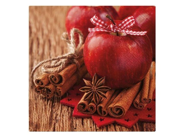 Papírový vánoční obrousek s motivem jablíček a skořice. Je vyroben z velmi kvalitního třívrstvého papíru. Tento ubrousek se skvěle hodí na stůl během vánočních svátků, kdy jeho dekorativní prvky doplní vaši slavnostní výzdobu. Je ideální pro servírování horkých nápojů, svařeného vína nebo svátečních jídel. MOTIV: jablka, skořice POČET UBROUSKŮ V BALENÍ: 20 ks Uvedená cena je za 1 balení po 20 ks.