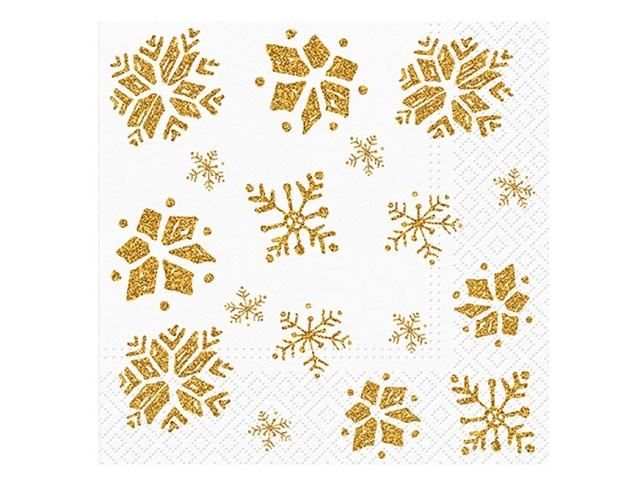 Vánoční ubrousek se zlatými sněhovými vločkami Ubrousek s motivem třpytivých zlatých vloček vnese na váš stůl slavnostní náladu a kouzlo zimních svátků. Jednoduchý bílý podklad nechává vyniknout detailně zpracovaným vločkám, které působí elegantně a moderně zároveň. Ubrousek je třívrstvý a hodí se pro vánoční stolování i pro tvorbu originálních dekorací nebo svátečních aranžmá. MOTIV: sněhové vločky POČET UBROUSKŮ V BALENÍ: 20 ks Uvedená cena je za 1 balení (20 kusů).