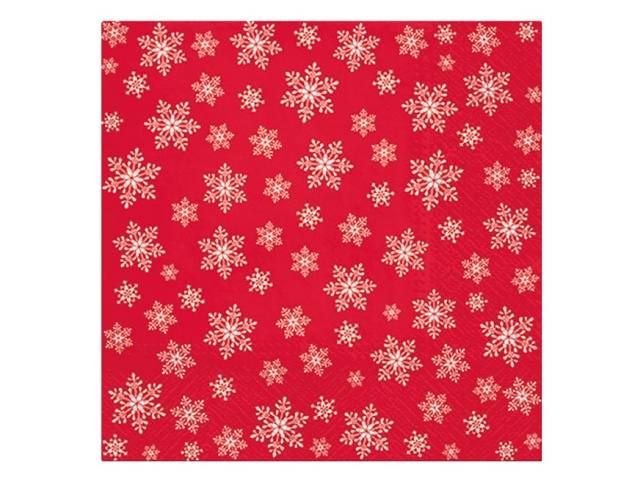 Vánoční ubrousek se sněhovými vločkami Elegantní vánoční ubrousek s motivem bílých vloček na sytě červeném podkladu vnese na váš stůl kouzelnou zimní atmosféru. Spojení klasické vánoční barvy a jemného vzoru vytváří výrazný a slavnostní dojem. Díky třívrstvému provedení je ubrousek pevný, odolný a zároveň příjemný na dotek. Stane se praktickým doplňkem, který krásně doladí vánoční tabuli i sváteční posezení s rodinou. Rozměr: 33 × 33 cm Motiv: sněhové vločky POČET UBROUSKŮ V BALENÍ: 20 ks Uvedená cena je za 1 balení (20 kusů).