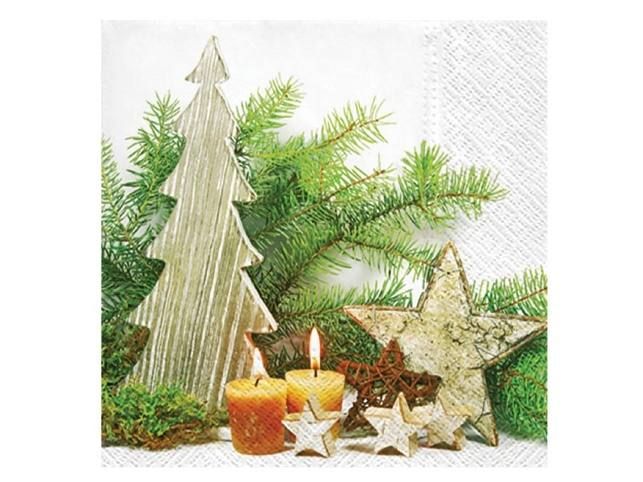 Vánoční ubrousek s rustikálním motivem Stylový doplněk, který vnese do vašeho domova hřejivou atmosféru Vánoc. Motiv dřevěného stromečku, hvězd, svíček a zelených větviček vytváří klidnou a útulnou sváteční náladu. Ubrousek je třívrstvý a využijete ho při svátečním stolování i kreativních technikách. MOTIV: vánoční aranžmá POČET UBROUSKŮ V BALENÍ: 20 ks Uvedená cena je za 1 balení po 20 ks.