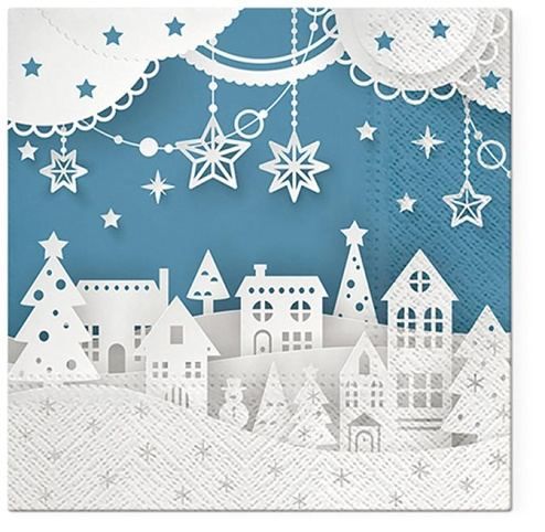 Papírové vánoční ubrousky - Kvalitní vánoční ubrousky z třívrstvého papíru s motivem zimního města s vánočním stromečkem a s vločkami. Jsou krásným vánočním doplňkem, které zpestří vánoční prostírání a vykouzlí příjemnou atmosféru. POČET UBROUSKŮ V BALENÍ: 20ks Uvedená cena je za 1 balení po 20ks. Rozměr: 330mm x 330mm x 1mm (Š x V x H)