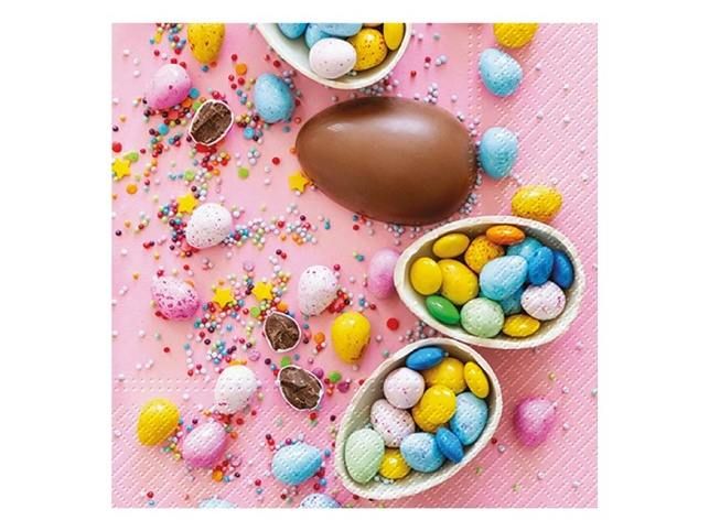 Rozmanité barvy a drobné detaily velikonočních vajíček, sladkostí a dekorací vytvářejí hravý a veselý motiv, který k velikonočnímu ubrousku patří. Design působí radostně a dobře se hodí pro sváteční stolování i neformální velikonoční pohoštění. Tři vrstvy papíru dodávají ubrousku pevnost a spolehlivou savost. Rozměr: 33 × 33 cm Motiv: velikonoční vajíčka, sladkosti POČET UBROUSKŮ V BALENÍ: 20 ks Uvedená cena je za 1 balení (20 kusů).