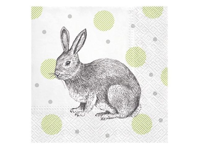 Jemná černobílá kresba zajíce doplněná drobnými puntíky vytváří jednoduchý a čistý motiv. Minimalistický styl nechává vyniknout velikonoční ubrousek jako nenápadný, ale vkusný doplněk stolu, snadno kombinovatelný s další výzdobou. Použitý třívrstvý papír dodává ubrousku potřebnou pevnost a spolehlivou savost, díky čemuž je vhodný pro každodenní i sváteční velikonoční použití. Motiv: zajíc, puntíky Rozměr: 33 × 33 cm POČET UBROUSKŮ V BALENÍ: 20 ks Uvedená cena je za 1 balení (20 kusů).