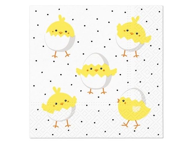 Papírový velikonoční ubrousek. Krásné velikonoční ubrousky s obrázky kuřátek ve skořápce dodají prostřenému stolu nádech přicházejícího jara a vykouzlí příjemnou atmosféru u slavnostního oběda nebo večeře. Ubrousek je kvalitní z třívrstvého papíru. Vhodný i na ubrouskovou techniku a různé dekorace. MOTIV: kuřátka ve skořápce POČET UBROUSKŮ V BALENÍ: 20 ks Uvedená cena je za 1 balení po 20 ks.