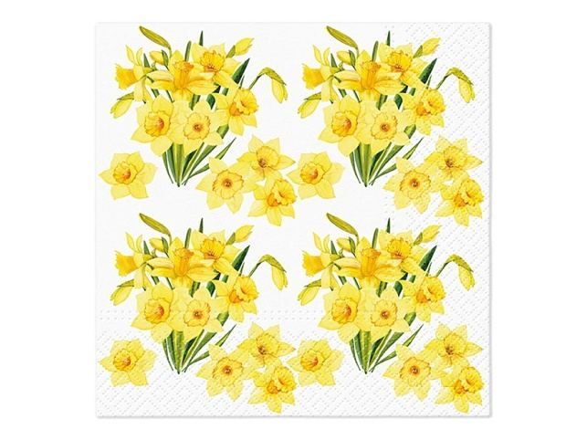 Přineste na svůj stůl závan jarní svěžesti! Tento ubrousek s bohatými kyticemi žlutých narcisů dodá každé tabuli jas a optimismus. Ideální pro velikonoční prostírání, jarní oslavy nebo jakékoli posezení, které si zaslouží nádech přírody. MOTIV: narcisy POČET UBROUSKŮ V BALENÍ: 20 ks Uvedená cena je za 1 balení po 20 ks.