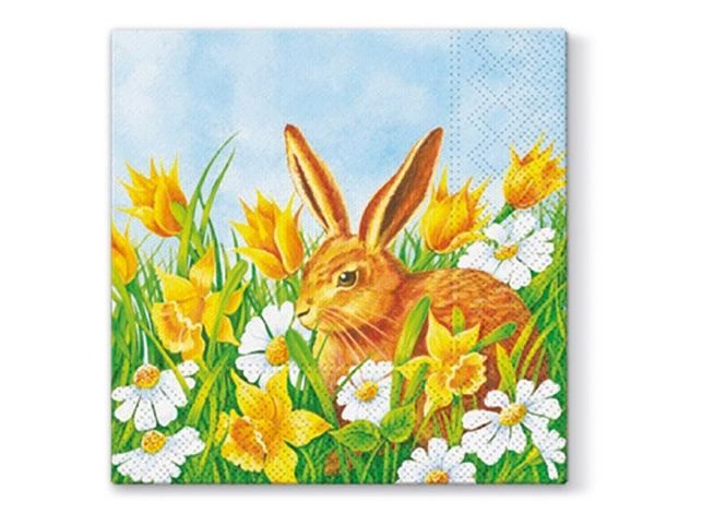 Hledáte něco, co zachytí kouzlo jarní přírody? Tento ubrousek s roztomilým zajíčkem mezi zářivými tulipány, narcisy a sedmikráskami přinese na váš stůl svěžest a radost Velikonoc. Ideální pro sváteční i jarní stolování! MOTIV: jarní květy, zajíc POČET UBROUSKŮ V BALENÍ: 20 ks Uvedená cena je za 1 balení po 20 ks.