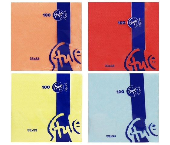 Ubrousky barevné 1-vrstvé. Balíček obsahuje 100 ks ubrousků. Rozměr: 33 x 33cm Mix barev