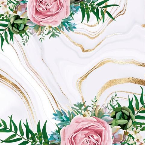 Ubrousky DAISY L (20ks) Pink Roses on Grey and Gold Marble