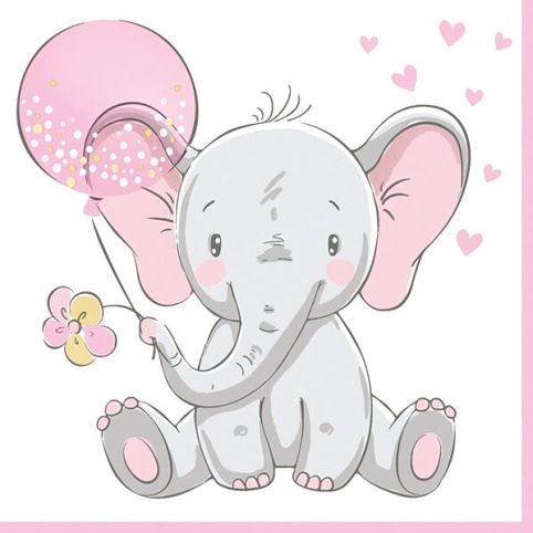 Ubrousky MAKI L (20ks) Baby Elephant with Pink Balloon