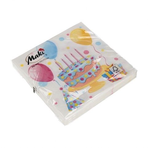 Ubrousky MAKI L (20ks) B‚day Cake with Balloons