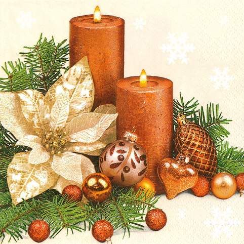 Ubrousky MAKI L (20ks) Gold Poinsettia & Two Candles