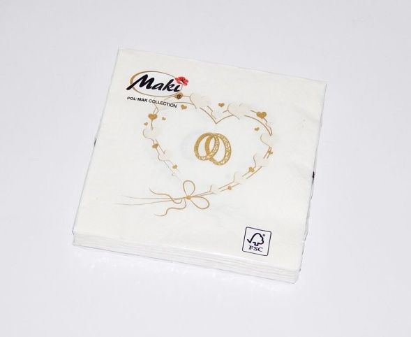 Ubrousky Srdce s prstýnky svatební 33x33, 20ks / SL_SL_000801
