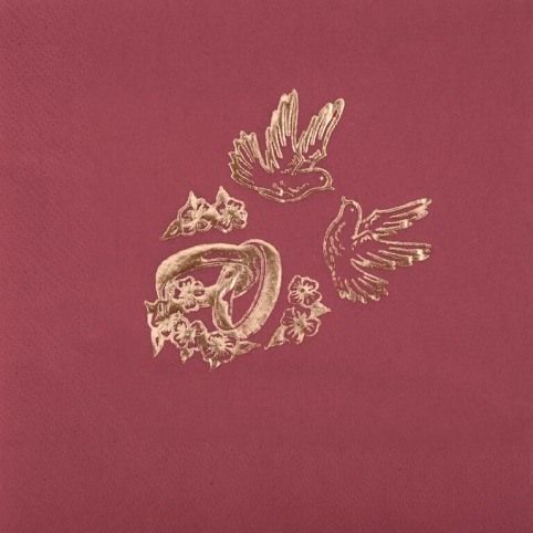 Ubrousky svatební BORDÓ zlatý potisk 33x33cm