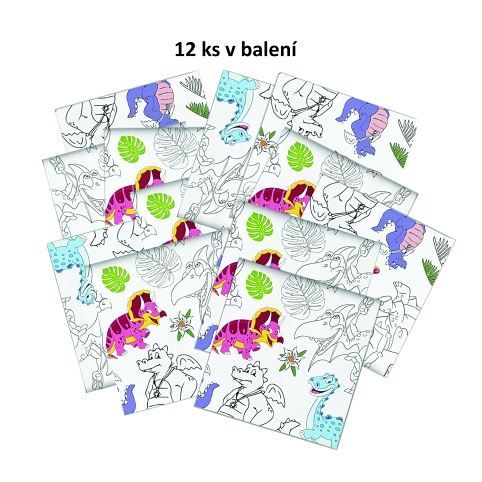 Ubrousky vybarvovací 12 ks dinosauři plast v sáčku 30x42x1cm