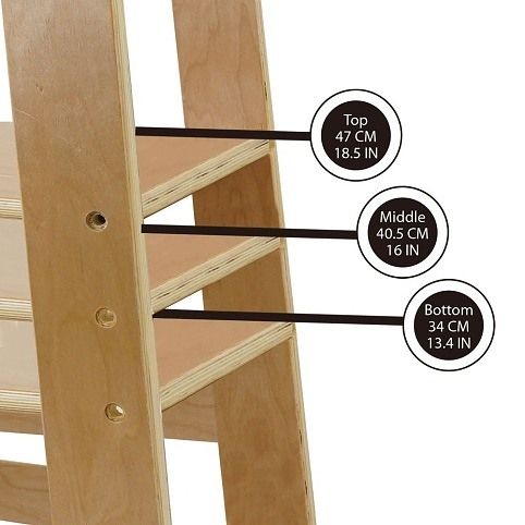 2. U plošiny jsou možné 3 výškové úpravy, aby vyhovovaly výšce dítěte: 34, 40,5 nebo 47 cm