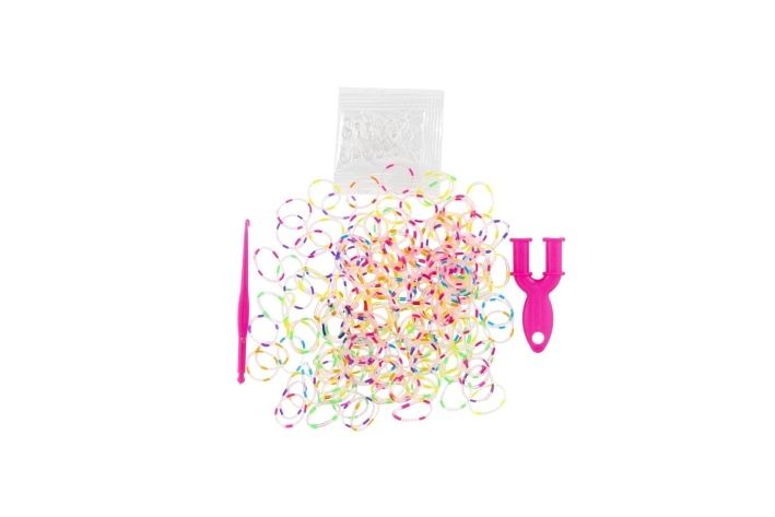 Vyrobte si náramek v oblíbené barevné kombinaci nebo jej darujte kamarádovi či kamarádce. Fantazii se meze nekladou! Vyrobte si ozdobu takovou, jakou budete mít jen vy nebo člověk, na kterém Vám záleží! Vše potřebné k výrobě najdeš uvnitř balení. Obsah:2 00 silikonových gumiček různých barev, pomůcku na provlékání, háček a 10 uzávěrů.