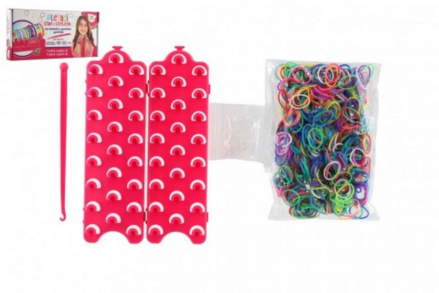 Tkalcovský stav na splétání gumiček mohou děti využít na výrobu náramků, gumiček do vlasů nebo třeba originální klíčenky. Vyrobit si mohou náramek v oblíbené barevné kombinaci nebo ho věnovat kamarádovi či kamarádce. Fantazii se meze nekladou. Splétání gumiček rozvíjí soustředění, představivost a trénuje manuální zručnost. Balení obsahuje: 600 ks silikonových gumiček různých barev, třířadý tkalcovský stav, háček na provlékání, uzávěry a návod. Rozměr krabičky: 27 x 13 x 4 cm. Vhodné od 3 let.