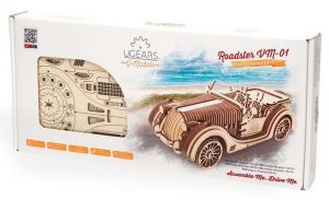 Milovníkům rychlosti a starých časů. Stavebnice autoveteránu typu roadster vyrobená z překližky. Model disponuje otevíracími dveřmi a odklopnou kapotou. Mechanika je do detailu propracovaná, a vy tak můžete pozorovat pohyb pístů motoru. Vůz je řiditelný a díky natahovacímu mechanismu je schopen jízdy, na jedno natažení urazí až 4 m. Má také funkční převodovku pro volnoběh a zpátečku. Uspořádejte závody s dalšími modely UGEARS! Vybaveno detailním návodem k sestavení. Počet dílků: 437, obtížnost vysoká, doba sestavení: 6-7 hodin.