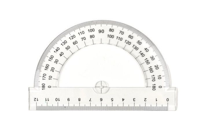 Transparentní úhloměr z čirého plastu je určený k rýsování a technickému kreslení ve škole i v kanceláři.