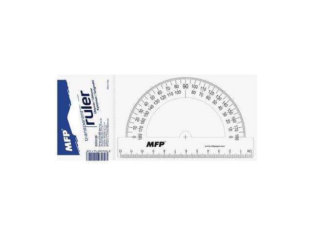 Školní plastový úhloměr. Možno měřit úhly do 180°, na spodní straně úhloměru je pravítko o délce 12 cm. Průměr úhloměru: 12,5 cm Barva: transparentní Pravítko je zdravotně nezávadné a neobsahuje ftaláty. Uvedená cena je za 1 ks.