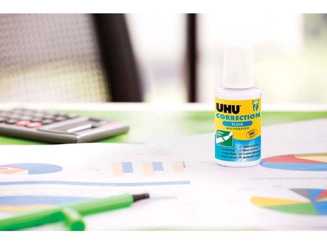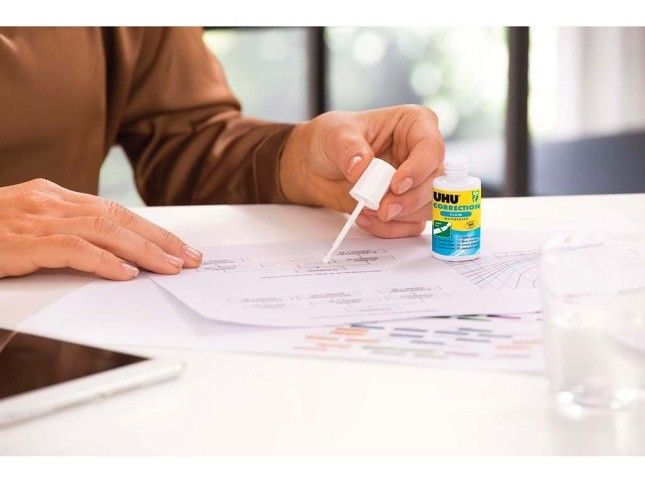 Speciální opravná tekutina v lahvičce se štětečkem pro opravy a korekce