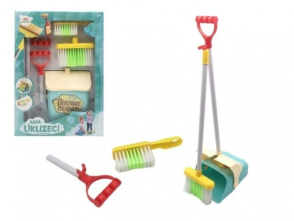 Velká sada pomůcek na úklid pro malé hospodyňky. Uklízecí sada je vyrobena z kvalitního plastu. Sada obsahuje velký smeták, smetáček a odpadkový koš (možno připevnit na násadu). Domácí práce se stanou velkou zábavou a vy tak děti naučíte základním návykům v úklidu, např. svého dětského pokoje.