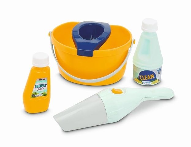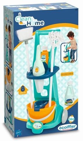 Vozík obsahuje veškeré potřebné náčiní: kbelík na úklid, mop, smeták, úklidové potřeby a ruční vysavač. Vozík pro domácnost je obzvláště lehký a ovladatelný, a proto jej lze vzít kamkoli. Tento úklidový vozík bohatý na detaily a bez ostrých hran je vhodný již pro děti od 3 let. Rozměry produktu (DxŠxV): 21 x 26,5 x 56 cm.