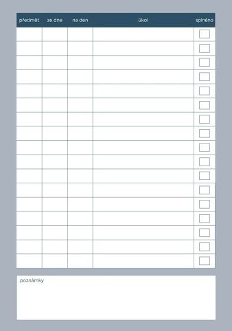 Úkolníček pro žáky k přehlednému zapisování domácích úkolů v přitažlivém designu, který se bude dětem líbit.