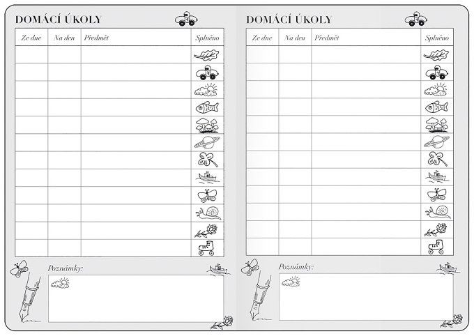 Úkolníček s rozvrhem hodin umožňuje dětem mít všechny školní úkoly a aktivity na jednom místě.