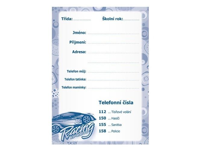 Úkolníček s obrázkem auta - Nepamatuje si Vaše dítě, co má dělat za úkoly? Kupte mu úkolníček, který slouží k přehlednému zapisování domácích úkolů. Úkolníček obsahuje: - osobní údaje - telefonní čísla - prostor pro poznámky - malá násobilka - geometrické vzorce a matematické vzorečky - vyjmenovaná slova - rozvrh hodin Formát: A5 Počet stran: 40 stran Uvedená cena je za 1 ks.