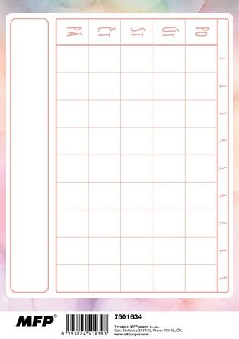 Roztomilost a praktičnost v jednom! Úkolníček potěší krásnou obálkou s jemným pastelovým designem a motivem kočičky s květinovým věnečkem. Je to nejen stylový, ale i užitečný pomocník, který vám pomůže udržet pořádek v úkolech a poznámkách. Formát A5, který se snadno vejde do aktovky a poskytne dostatek místa na všechny úkoly. Mějte své úkoly vždy pod kontrolou! ÚKOLNÍČEK OBSAHUJE: - osobní údaje - telefonní čísla - prostor pro poznámky - malá násobilka - geometrické vzorce a matematické vzorečky - vyjmenovaná slova - rozvrh hodin Formát: A5 Motiv: kočka Počet stran: 40 stran Uvedená cena je za 1 ks.