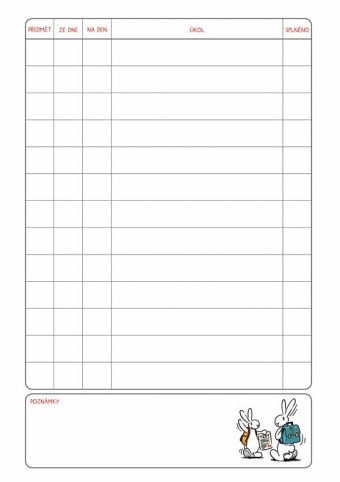 Školní rok může být zábava, když máte parťáka, jako jsou Bob a Bobek! Tento úkolníček ve formátu A6 je připravený doprovázet každého školáka na jeho dobrodružné cestě za vědomostmi. Díky své kompaktní velikosti se snadno vejde do batohu tašky. Pořiďte si svého parťáka do školy ještě dnes! ÚKOLNÍČEK OBSAHUJE: - osobní údaje - telefonní čísla - prostor pro poznámky - malá násobilka - geometrické vzorce a matematické vzorečky - vyjmenovaná slova - rozvrh hodin Formát: A6 Motiv: Bob a Bobek Počet stran: 40 stran Uvedená cena je za 1 ks.
