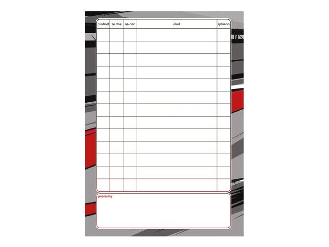 Úkolníček DISNEY - s obrázkem Cars (Autra) od Walta Disney - Nepamatuje si Vaše dítě, co má dělat za úkoly? Kupte mu úkolníček, který slouží k přehlednému zapisování domácích úkolů. Úkolníček obsahuje: - osobní údaje - telefonní čísla - prostor pro poznámky - malá násobilka - geometrické vzorce a matematické vzorečky - vyjmenovaná slova - rozvrh hodin Formát: A6 Počet stran: 40 stran Uvedená cena je za 1 ks.