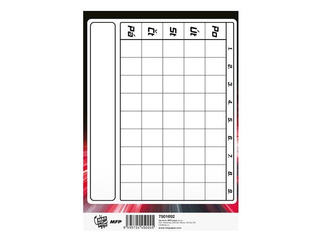Školní den má někdy tempo jako závodní okruh – a právě proto je dobré mít všechny úkoly a poznámky přehledně na jednom místě. Tento úkolníček MFP s motivem formule je navržený tak, aby se stal spolehlivou součástí každodenní školní výbavy. Formát A6 je kompaktní a praktický. Stránky mají dost prostoru na zápisy a jejich přehledné členění usnadňuje orientaci. ÚKOLNÍČEK OBSAHUJE: - osobní údaje - telefonní čísla - prostor pro poznámky - malou násobilku - geometrické a matematické vzorce - vyjmenovaná slova - rozvrh hodin Formát: A6 Motiv: formule Počet stran: 40 Uvedená cena je za 1 ks.