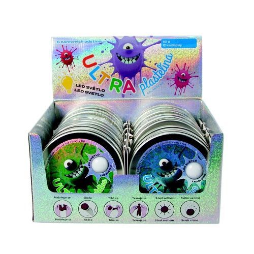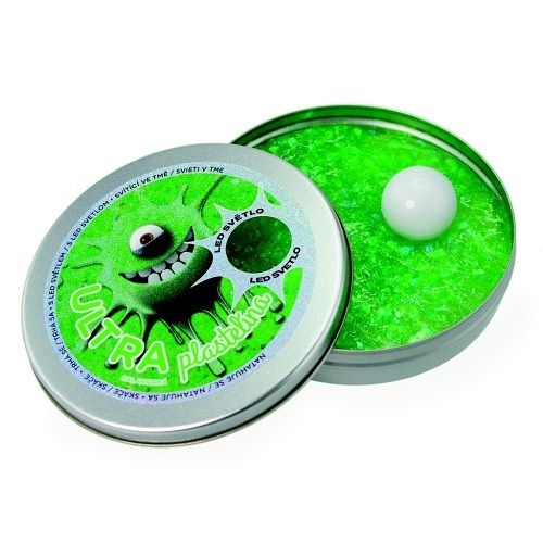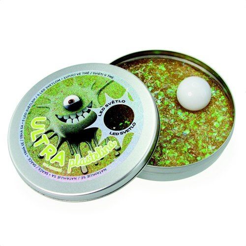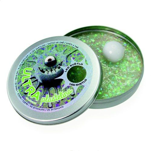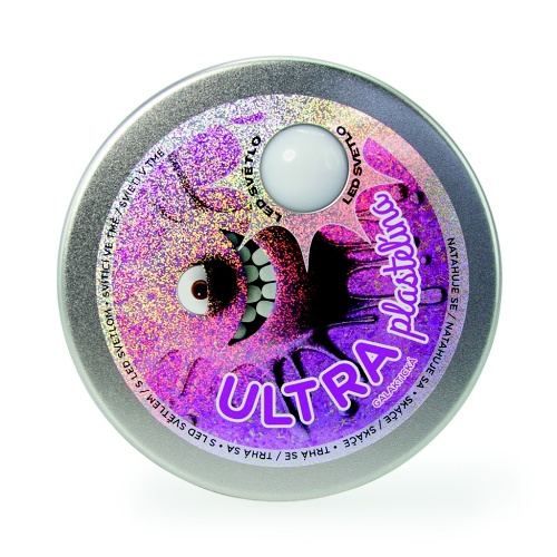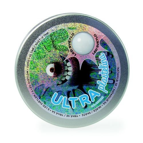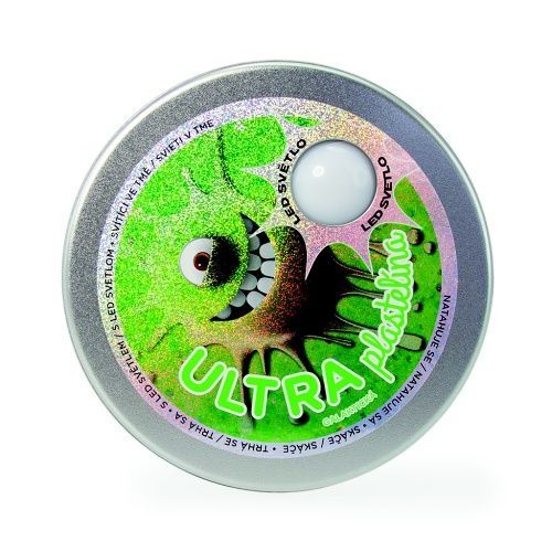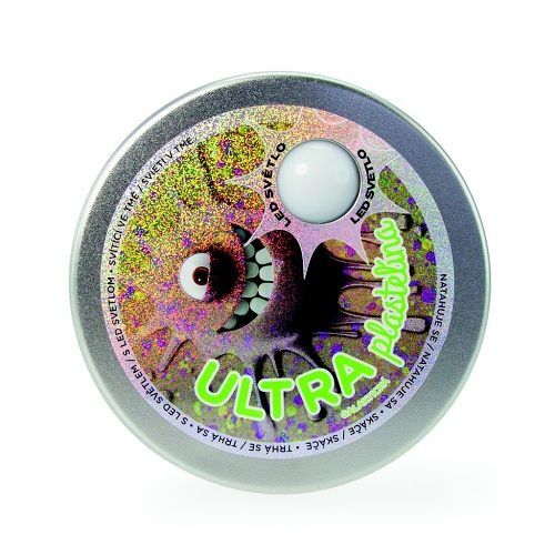 ULTRA Plastelína je unikátní hmota s výjimečnými fyzikálními vlastnostmi. Skvěle se tvaruje, natahuje jako žvýkačka, skáče jako hopík, trhá jako papír, funguje jako skvělá antistresová pomůcka. Můžete si vybrat z 6 barevných kombinací. Tato Ultraplastelína navíc obsahuje kuličku s barevným LED světlem, které při pohybu svítí a bliká. Vyrobte si svůj vlastní světelný hopík. Nyní nově svítí ve tmě jako GALAXIE. Na baterie: 3x LR54 (jsou součástí balení)