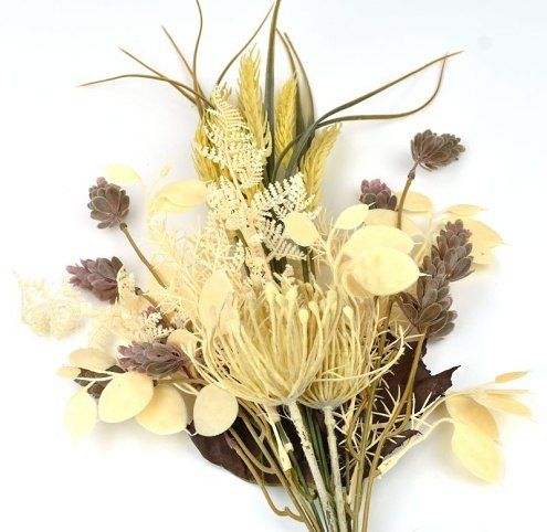 Tato umělá kytice se perfektně hodí k podzimním dekoracím. Dejte si ji do venkovního květináče nebo ji umístěte do vázy přímo na váš stůl. Kytici navíc můžete rozvázat a použít tak jednotlivé prvky do jiných dekorací.