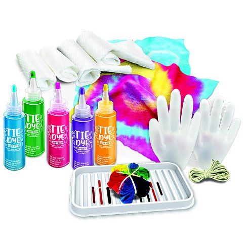 Sada na batikování. Nabatikuj si tričko nebo přiložené kapesníčky. Vytvoř rozdílné tvary různých barev.