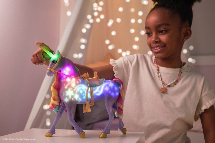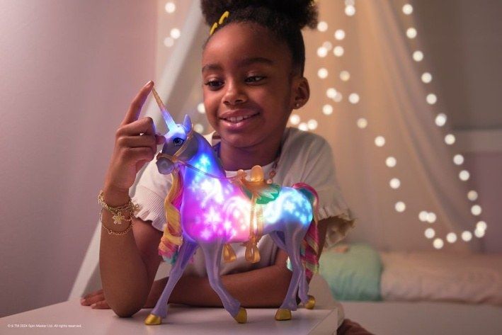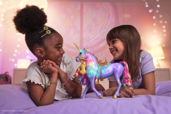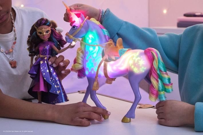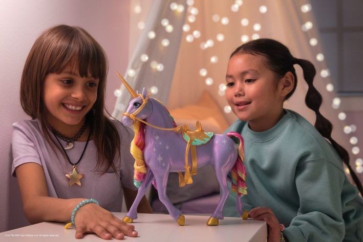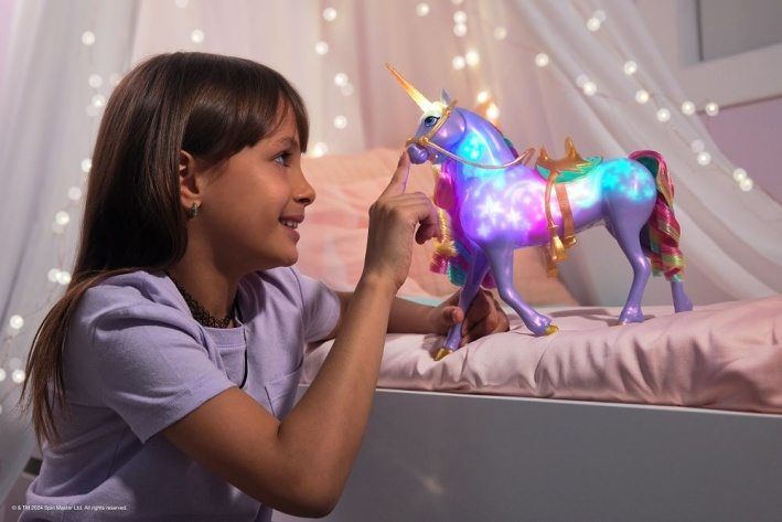 Objevte svůj osud v Jednorožčí akademii díky světelné duhové Polárce! Tento bezmála 28cm interaktivní jednorožec, inspirovaný animovaným seriálem od NETFLIXu a bestsellerovou knižní sérií, reaguje na dotek duhovými světly, zvukovými efekty a písněmi z poř