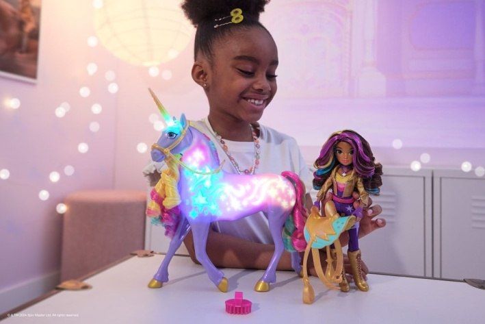 Objevte svůj osud v Jednorožčí akademii po boku Sofie a světelné duhové Polárky! Děti se mohou nechat inspirovat animovaným seriálem od NETFLIXu a bestsellerovou knižní sérií a přehrát si magický moment sblížení díky 28cm interaktivní panence Polárky a 24